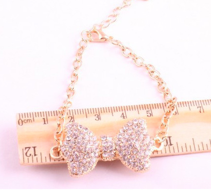 Gold accent link bracelet with1 1/2" rhinestone bow